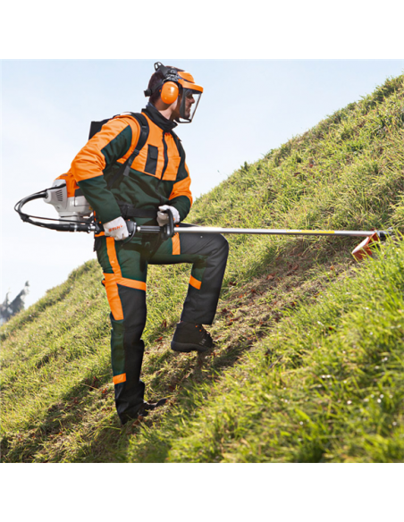 - Galinga krūmapjovė su taupiai degalus vartojančiu "2-MIX" varikliu ir ypatingai patogia įranga: STIHL "ErgoStart", stabdymo mygtuku ir papildomu krepšiu įrankiams.