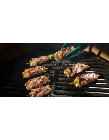 - Kepdami naudokite ketaus groteles (Cast Iron Grid), ir daržovės, lašišos bei jautienos kepsniai pasipuoš apetitą keliančiu grotelių raštu. Kepant ant ketaus grotelių mėsa išliks sultinga.