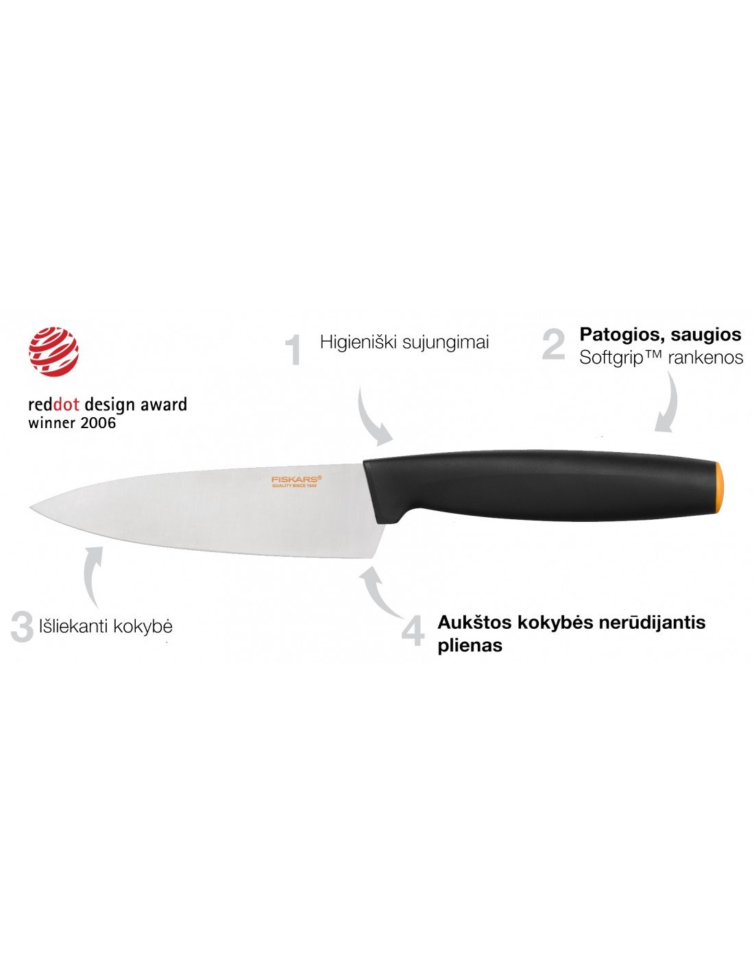 - Specialiai sukurta "FunctionalForm" peilio rankena leidžia dirbti patogiausioje pozoje ir atrodo šiuolaikiškai.