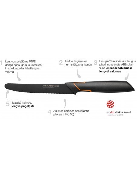 - "Edge" linijos vidutinio dydžio, patogus universalus peilis dantytais ašmenimis puikiai tinka pjaustant produktus su plutele ar odele. Pavyzdžiui, duoną ar pomidorus.