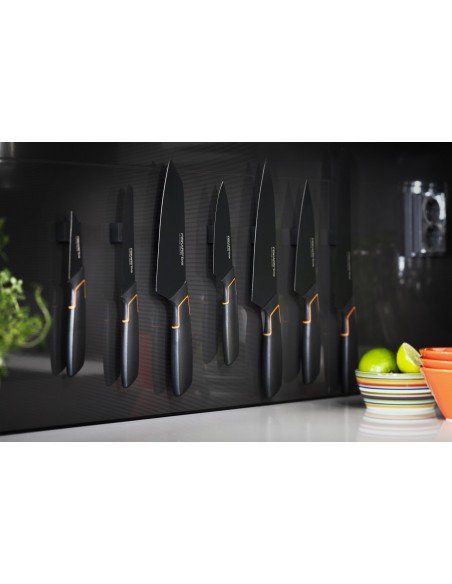 - Speciali danga ne tik padaro peilį lengvai valomą, patvaresnį ir apsaugo nuo maisto prilipimo prie geležtės, bet ir padaro juos patrauklesniais, suteikia elegantišką juodą užbaigimą.