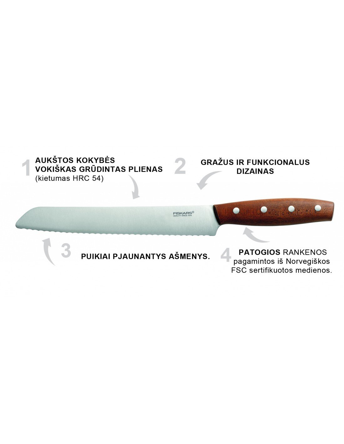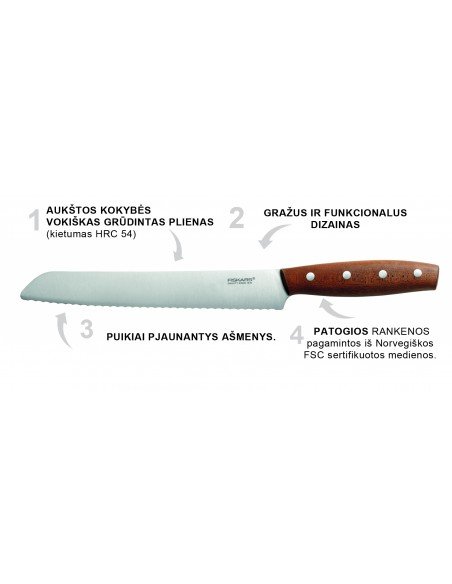 - FISKARS NORR peilių linija įkvėpta skandinaviško dizaino, maisto gamybos kultūros ir funkcionalumo.