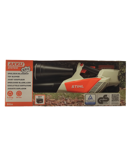 • Su naujuoju žaisliniu akumuliatoriniu pūstuvu STIHL net patys mažiausi gali padėti pūsti lapus. Šio žaislinio pūstuvo vamzdis turi tris skirtingus ilgio reguliavimus. „Start-stop“ jungiklis, taip pat saugos jungiklis ir varžtas žaismingai imituoja profesionalaus prietaiso veikimą. Ilgis: 54 cm - 61,5 cm. Į komplektą įeina ir baterija.